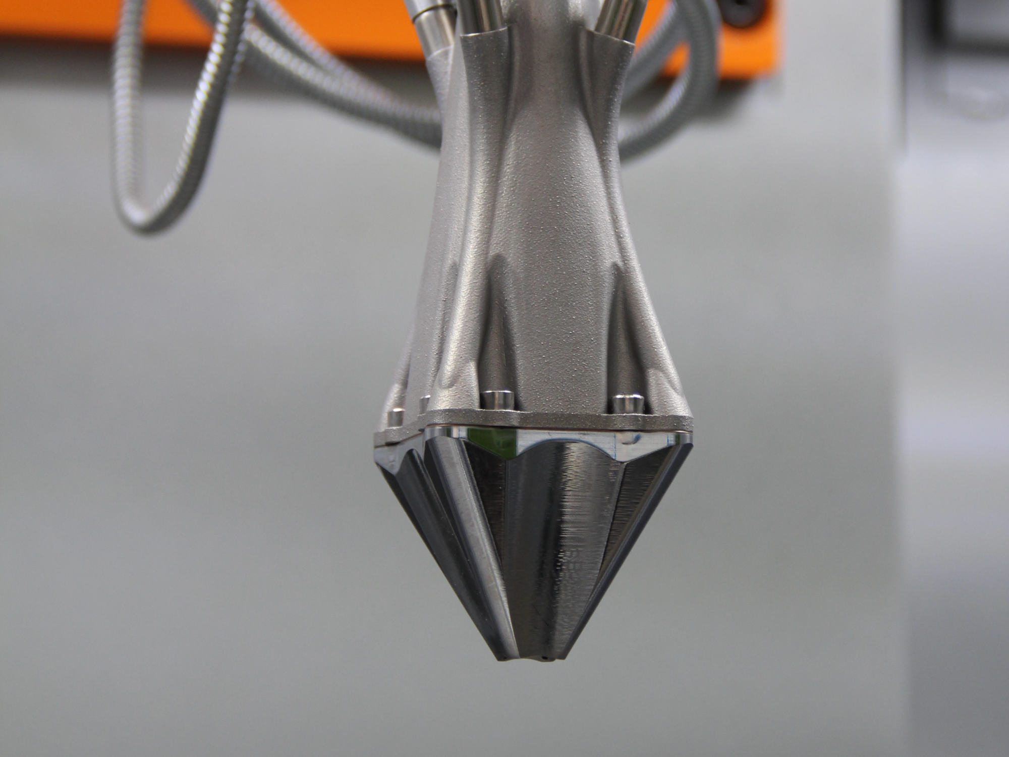 In this way, the laser melts the powder, which is deposited on the component only where it is needed.